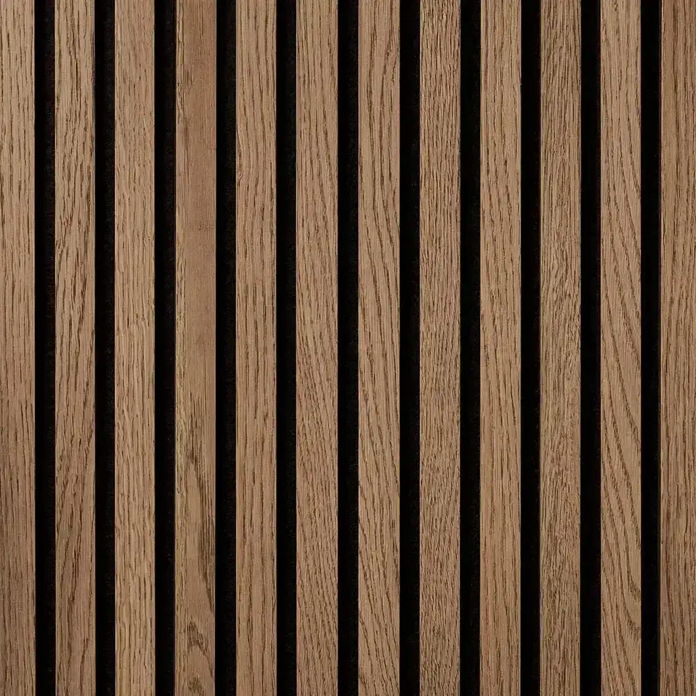 Рейки виготовлені на основі МДФ та вкриті натуральним дубовим шпоном. Завдяки такій конструкції вони мають стабільну геометрію, а поверхня зберігає вигляд натурального дерева. Основні переваги: