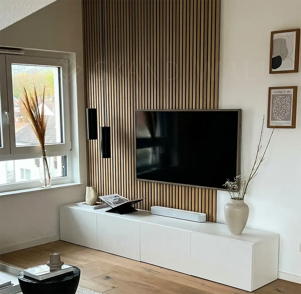 Рейкові панелі покращують акустику в приміщеннях – завдяки своїй об’ємній 3d-структурі вони розсіюють звукові хвилі (ефект дифузії), зменшуючи відлуння та створюючи приємніший звуковий фон.