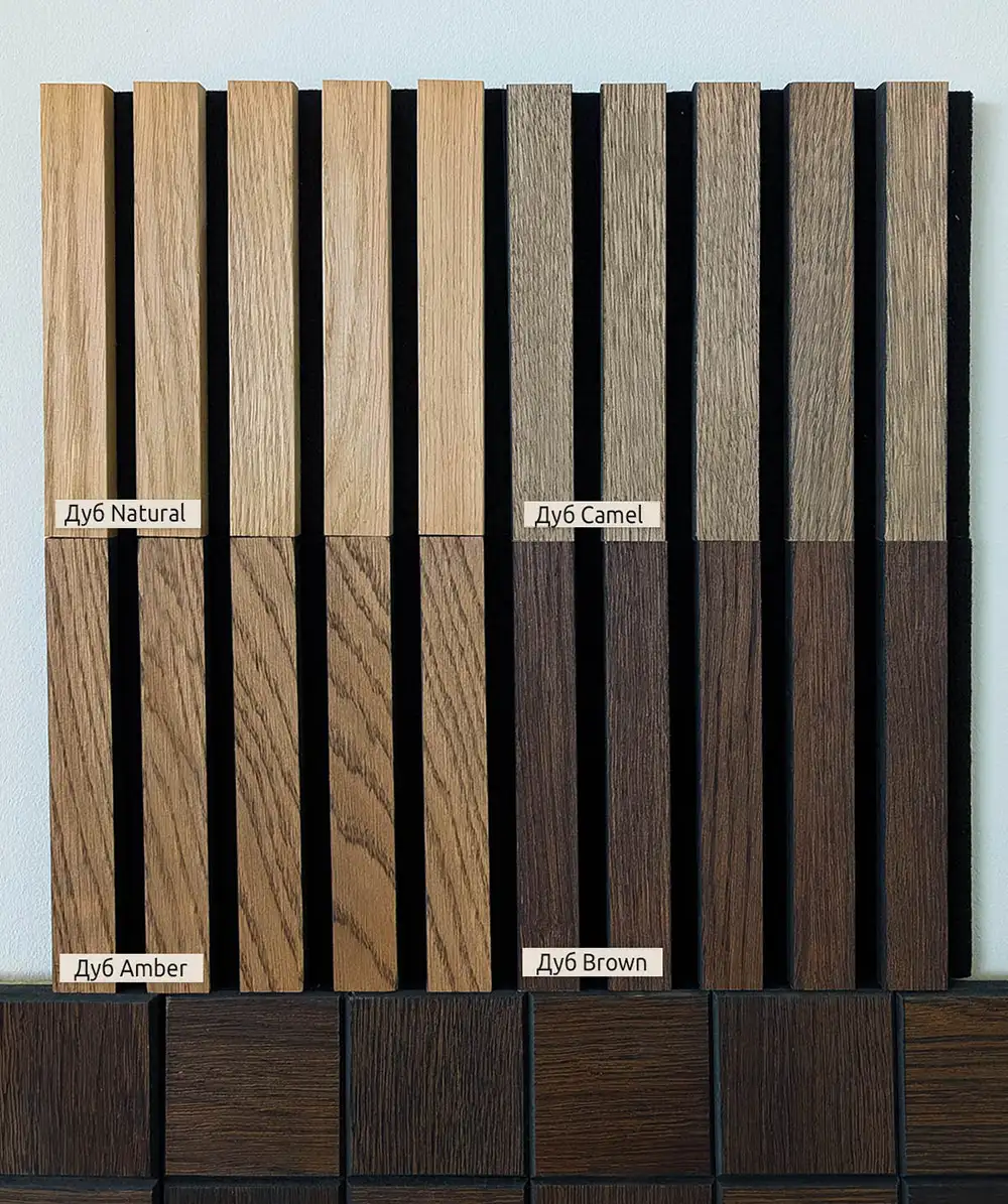 | Матеріали | Рейки: натуральний шпон дуба на МДФ основі. Основа: акустичний войлок. | |