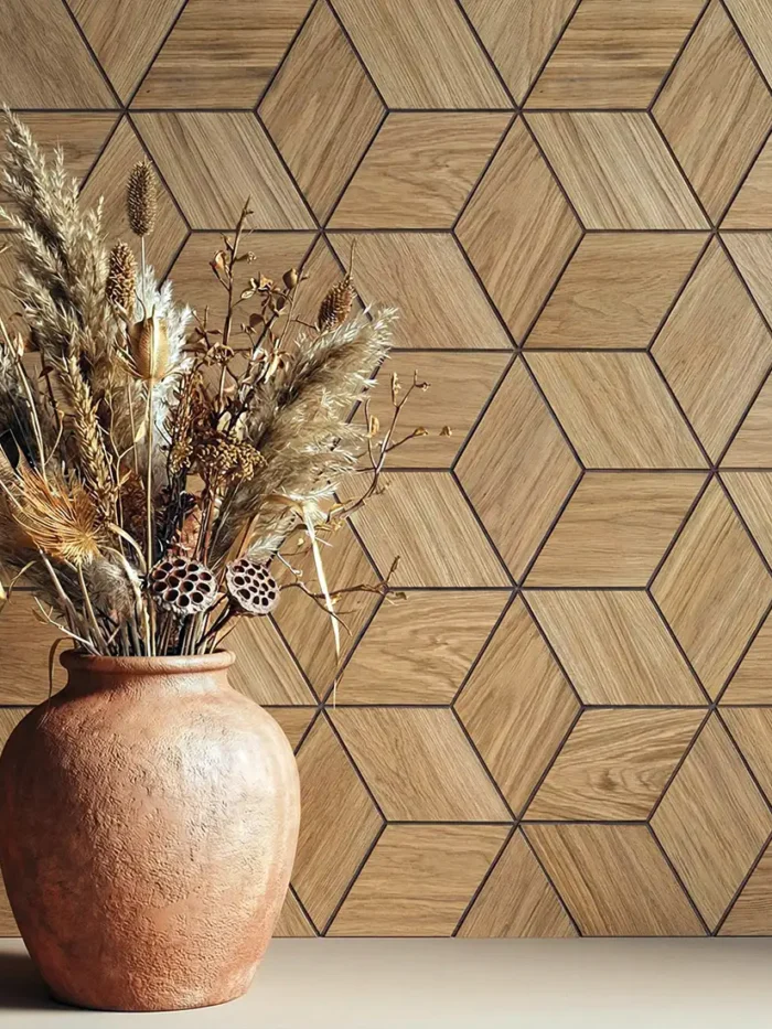 Рейки виготовлені на основі МДФ та вкриті натуральним дубовим шпоном. Завдяки такій конструкції вони мають стабільну геометрію, а поверхня зберігає вигляд натурального дерева. Основні переваги: