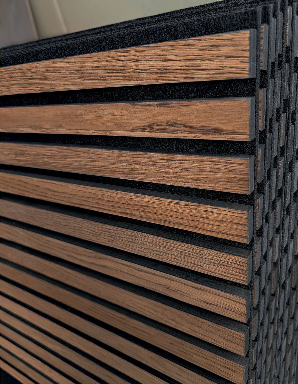 Slatted panels improve the acoustics in rooms - thanks to their three-dimensional 3D structure, they scatter sound waves (diffusion effect), reducing echoes and creating a more pleasant sound background.