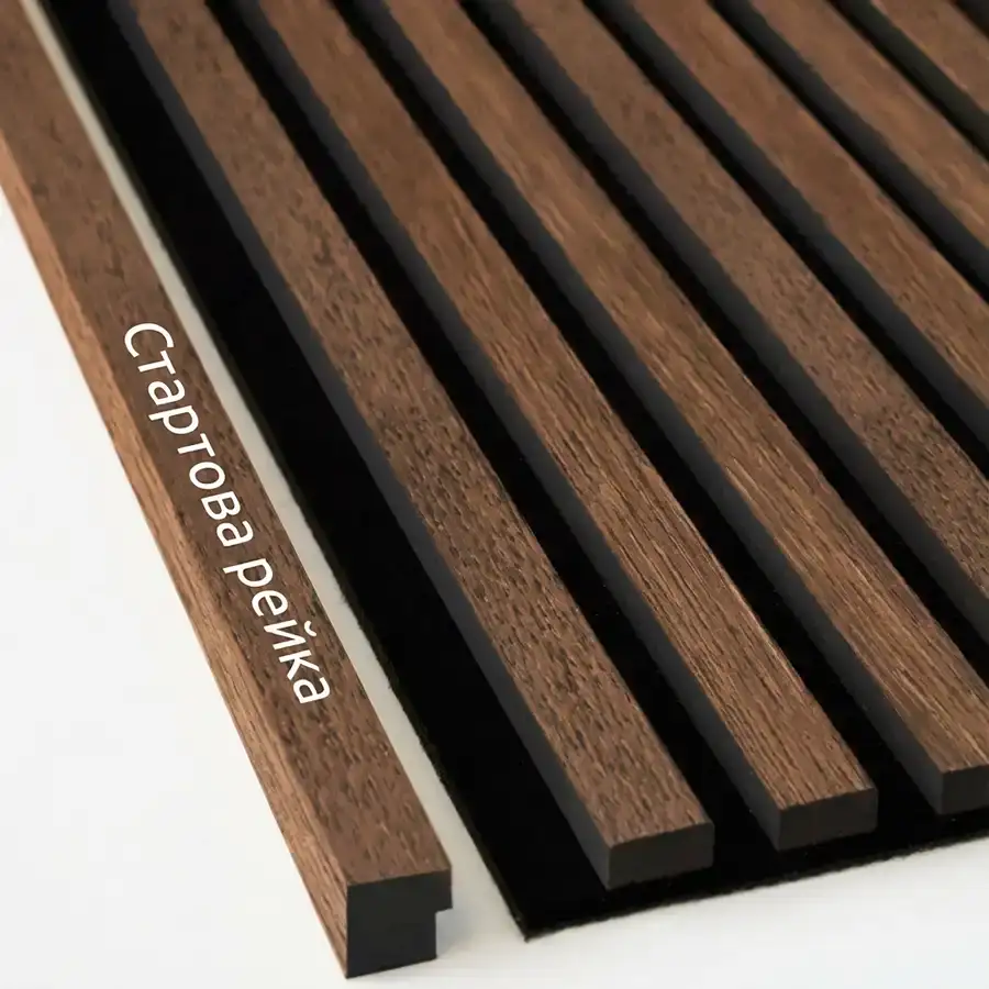 The slats are made of MDF and covered with natural oak veneer. Thanks to this design, they have a stable geometry, and the surface retains the appearance of natural wood. Main advantages: