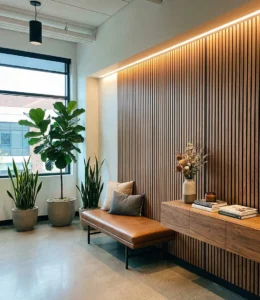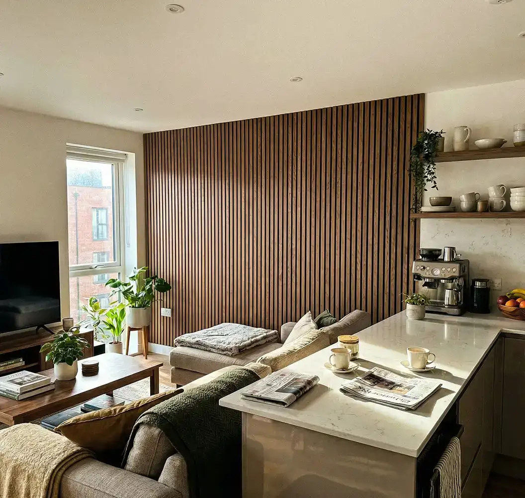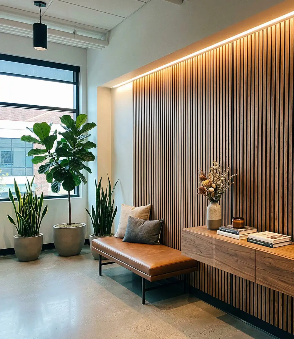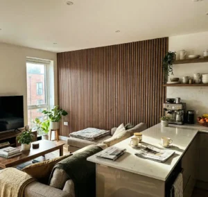 Slatted panels are ideal for living rooms, bedrooms, hallways, and commercial spaces.